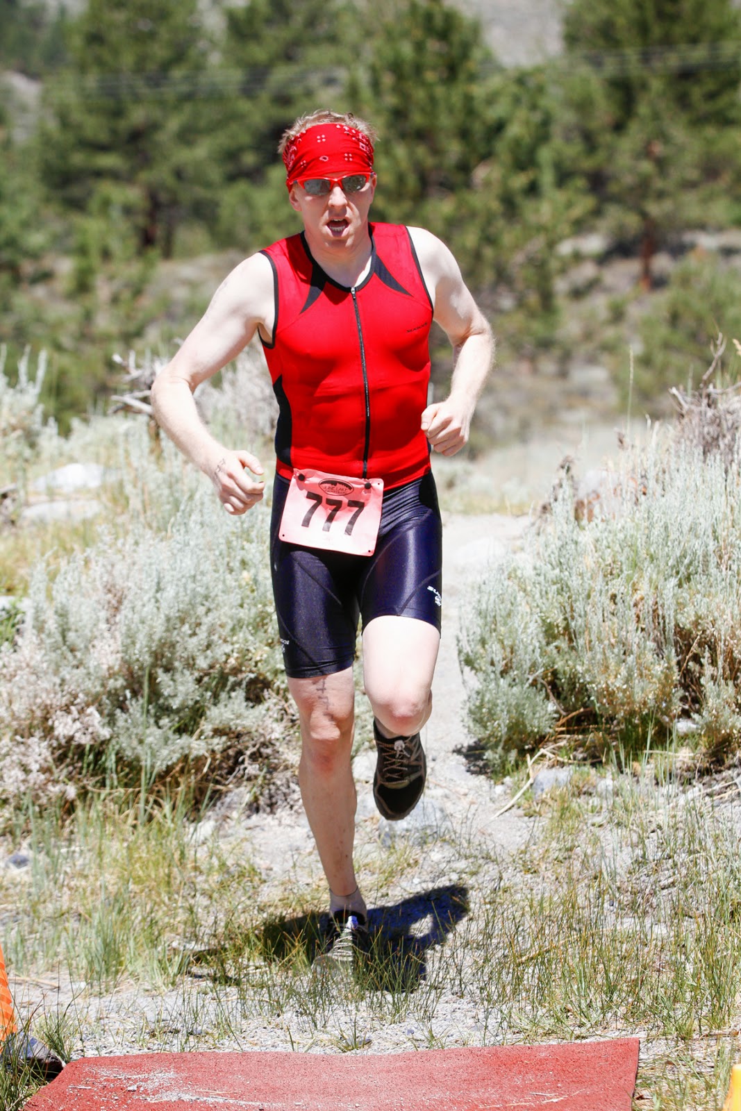 This past weekend, RiderTurbo busted out a quick triathlon to stay competitive and mix it up: The June Lake Triathlon near Mammoth Lakes, California. Billed as the "toughest race in the most beautiful place." Olympic distance "plus" consisting of 1500m Swim, 40km Bike, 6.5mi Run. High altitude hematocrit-builder at 7000-8000 ft elevation. Hilly time trial bike leg with no drafting and plenty of climbing. Grueling run with a mix on and off road plus 1100+ft. elevation gain on rocky single track trails.
